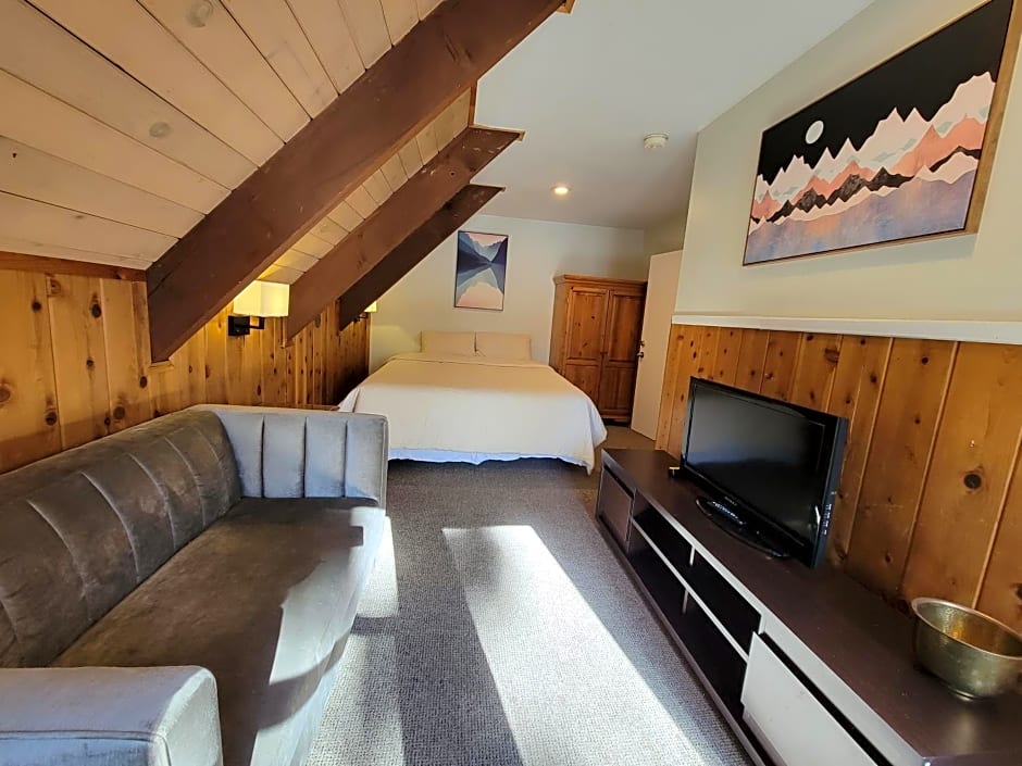 The fireplace is a top feature of this suite. Boasting a private entrance, this suite comes with 1 living room, 1 separate bedroom and 1 bathroom with a walk-in shower and a hairdryer. A kitchenette fitted with a refrigerator, kitchenware and a microwave is available for cooking and storing food. This suite has a seating area, flat-screen TV with cable channels, mountain views, as well as wine/champagne for guests. The unit has 2 beds.